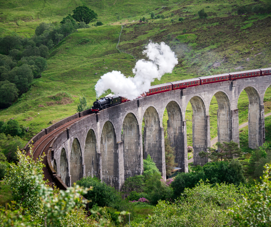 Travel from Fort William to Mallaig and back, all aboard the Jacobite Express, described as the greatest railway journey in the world (tickets subject to availability). Starting near the highest mountain in Britain, Ben Nevis, it visits Britain’s most westerly mainland railway station, Arisaig; passes close by the deepest freshwater loch in Britain, Loch Morar and the shortest river in Britain, River Morar, finally arriving next to the deepest seawater loch in Europe, Loch Nevis. Meal: Breakfast